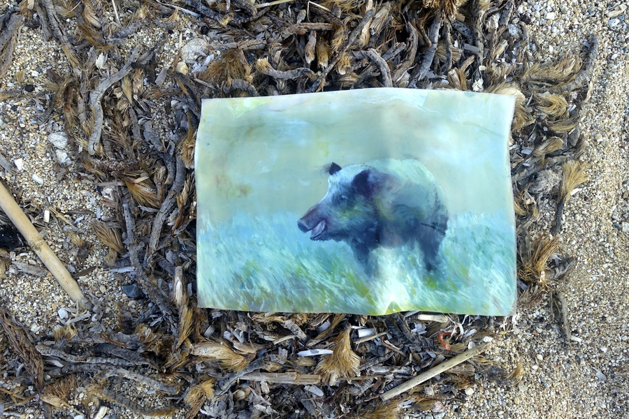 His “Lambs” series of aqua-resin lamb heads are docile, stately and gently mysterious. The lamb heads are not busts, but rather cropped sections that still carry an imaginary presence of the entire body. The pristine color and smoothness of the medium evoke classical tenets and a sense of timelessness, accentuating their fleeting innocence and our current societyʼs long departure from classical idealism.